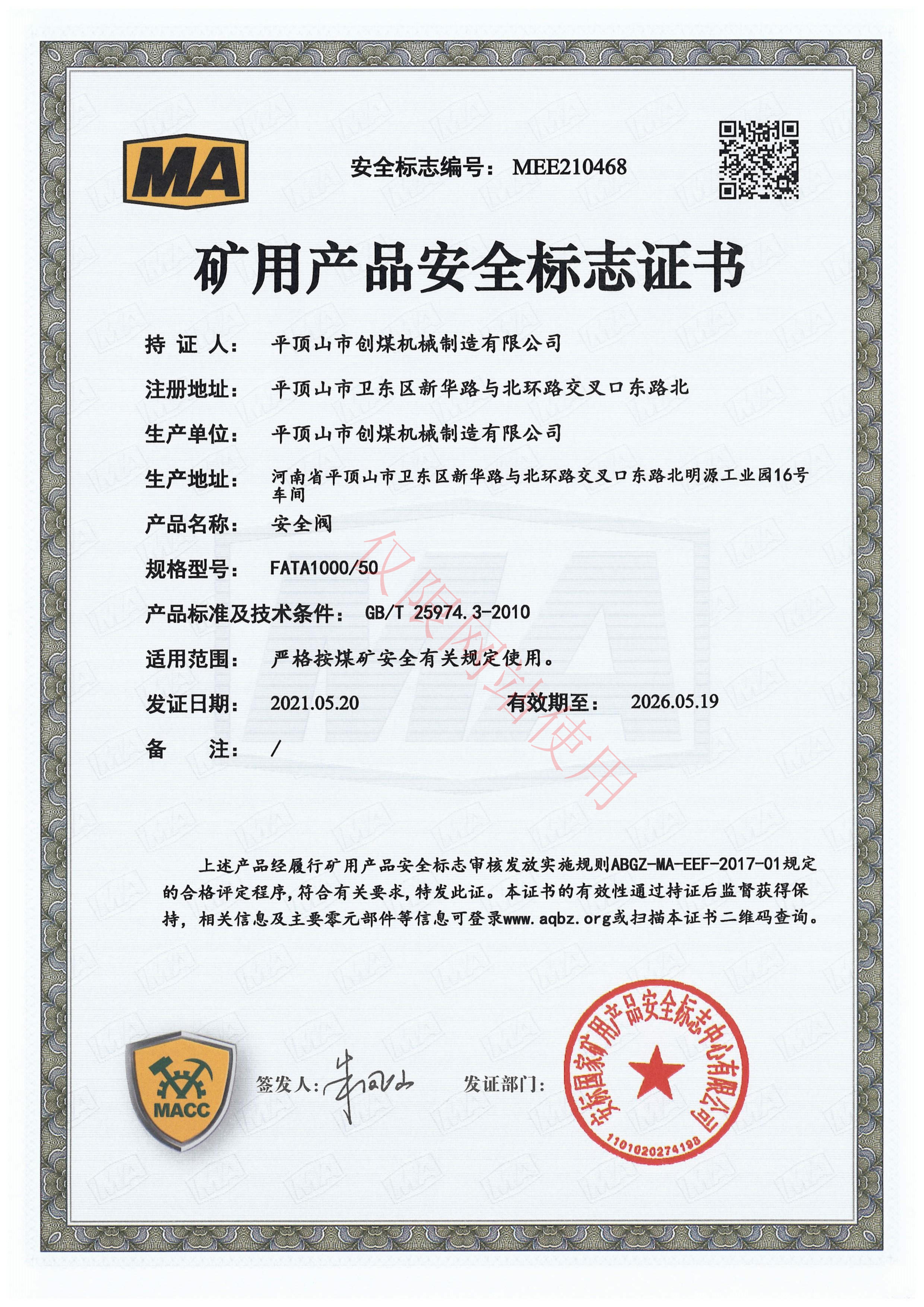 安全閥FATA1000/50